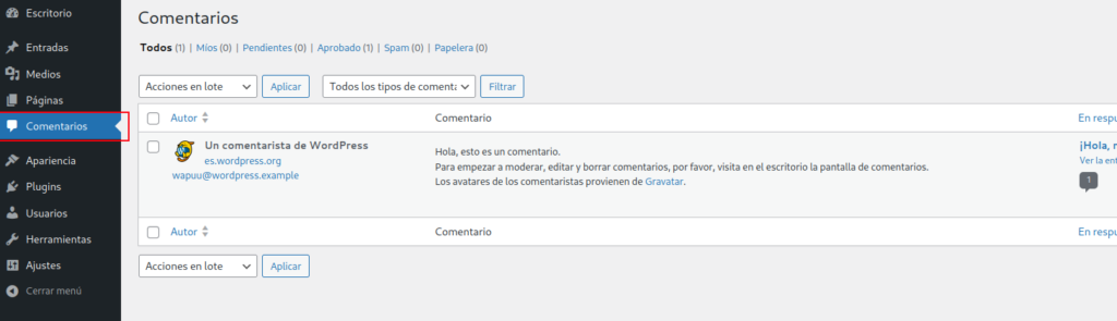 Para configurar los comentarios, has de entrar a Ajustes > Comentarios y desde ahí tienes un montón de opciones para controlar como funcionarán los comentarios en tu blog o para determinar si los quieres desactivar.